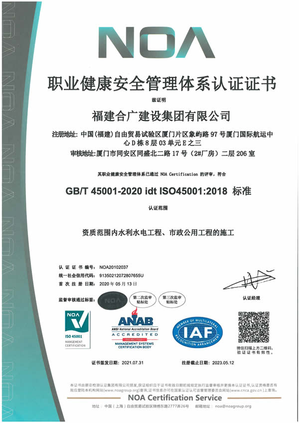 福建合廣建設集團有限公司,注冊資本5188萬元人民幣,公司位于廈門市同安區(qū)鳳山一里151-17號。本公司成立于2013年,公司具備市政公用工程、水利水電工程、房屋建筑工程、公路工程、園林綠化等多專業(yè)施工資質(zhì)。企業(yè)從業(yè)人員100多人,各類專業(yè)技術(shù)人員70多人,其中高級職稱8人,中級職稱40多人,一級建造師6人,二級建造師15多人。